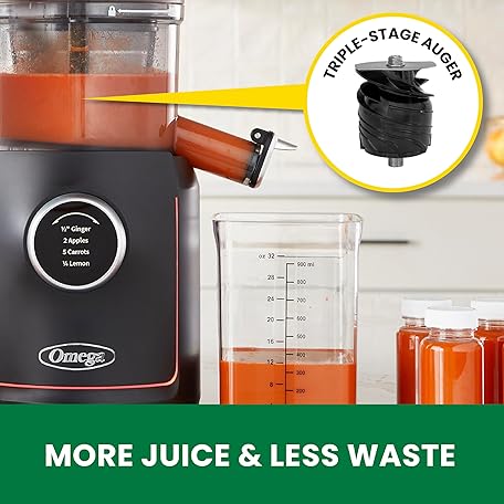 Thông tin sản phẩm Omega Ultimate Performance Slow Masticating Batch Juicer with Intellidial Technology Cold Press Vegetable and Fruit Juice Extractor with 64-Ounce Hopper and 4 Juice Shot Glasses, 200-Watts, Black