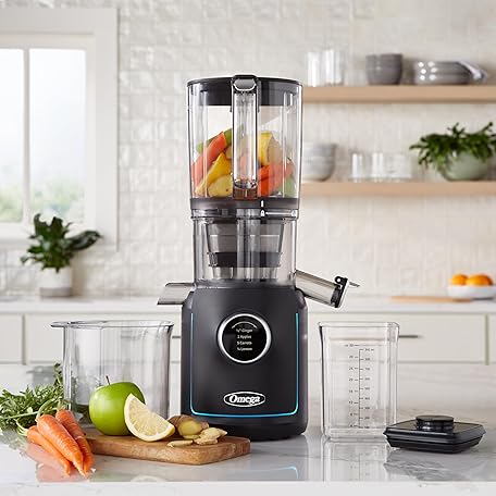 Thương hiệu Omega là cái tên nổi tiếng được rất nhiều khách hàng trên thế giới chọn lựa. Với kiểu dáng đẹp mắt, sang trọng, sản phẩm Omega Ultimate Performance Slow Masticating Batch Juicer with Intellidial Technology Cold Press Vegetable and Fruit Juice Extractor with 64-Ounce Hopper and 4 Juice Shot Glasses, 200-Watts, Black là sự lựa chọn hoàn hảo nếu bạn đang tìm mua một món cho riêng mình.