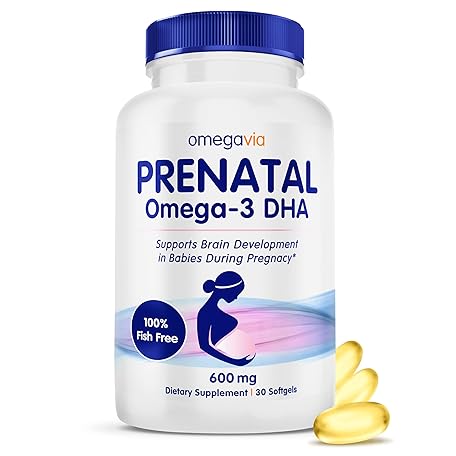 OmegaVia Prenatal DHA 600mg | Fish-Free Omega-3 Supplement | Supports Baby’s Brain, Eye & Nervous System Development | Safe for Pregnancy & Lactation | 30 Easy-to-Swallow Softgels