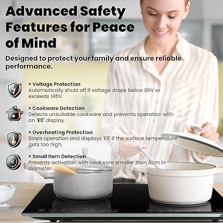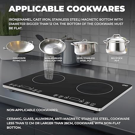 Thông tin sản phẩm OMEO Portable Double Induction Cooktop 2 Burner Electric Cooktop, Touch Control 110V Induction Cooker with Safety Lock, Pause, Auto Shutoff Timer Setting, 9 Heating Level and Overheating Protection