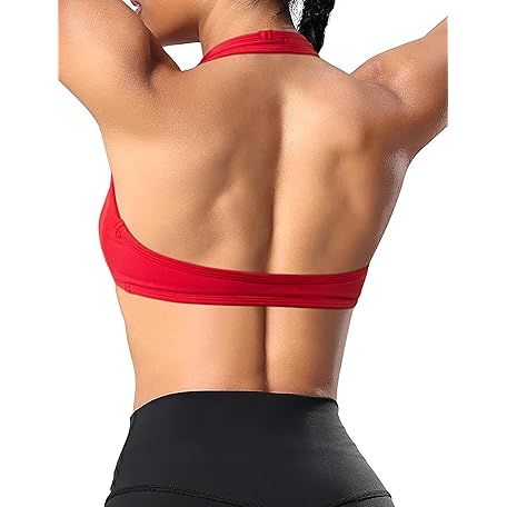 OMKAGI Halter Sports Bras for Women Open Back Workout Bras Padded Yoga Bra Gym Tops