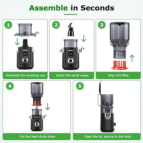 Thông tin sản phẩm OMMO Cold Press Juicer Machines : 5.1" Wide Feed Chute Slow Masticating Juicer for Whole Fruits & Vegetables, Easy to Clean, High Juice Yield, BPA Free, Black