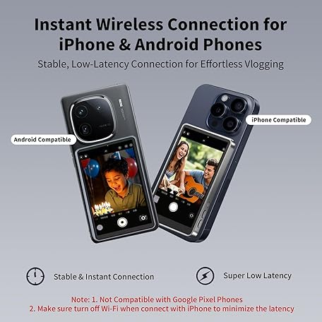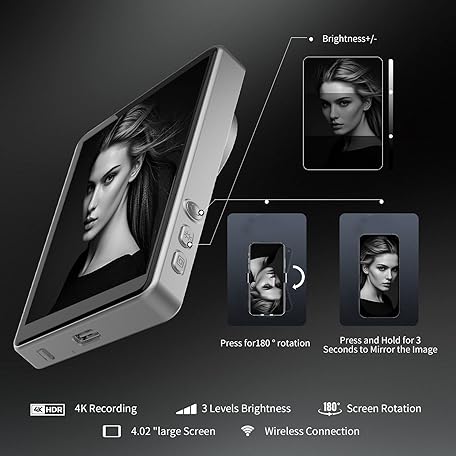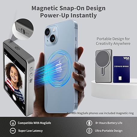 OmniMaster Back Camera Monitor for iPhone & Samsung – Magnetic Selfie Screen with Bluetooth Remote, Record Stunning 4K Videos for Vlogging & Livestreaming MagView (Gray)