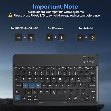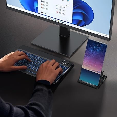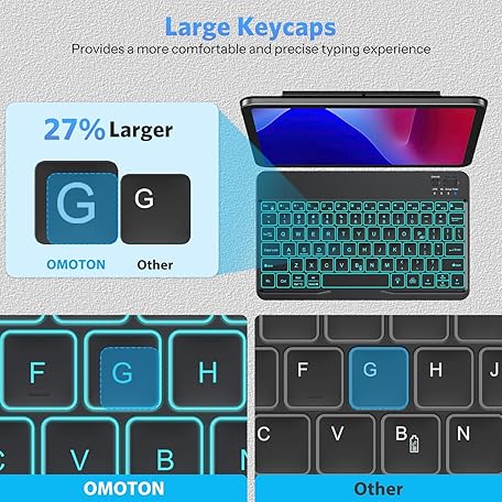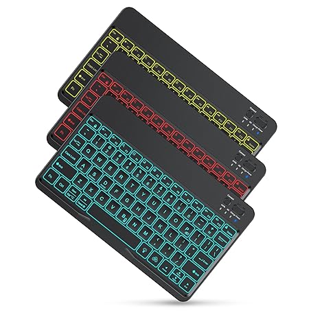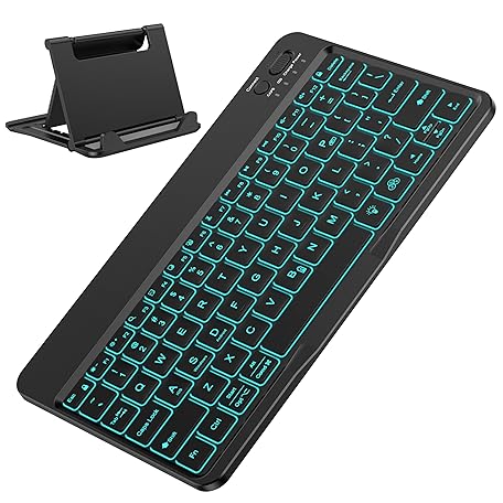 OMOTON Bluetooth Keyboard for Tablet/Android/Windows/iOS, with 7 Colors Backlight Rechargeable Wireless Mini Keyboard for Galaxy Tab A9+/A9+ Plus/S9/S9 Plus/S9 FE, Black