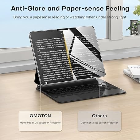 OMOTON PAPERSENSE Matte Screen Protector for iPad Pro 11 Inch 5th Gen M4 2024/M5 2025, Paper-feel, Matte Tempered Glass with Dust-free Installation Tray, Anti-glare, Apple Pencil Support, 2 Pack