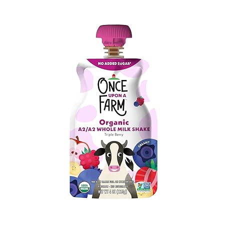 Once Upon a Farm A2/A2 Whole Milk Shake, Triple Berry Kids' Pouch, 4oz