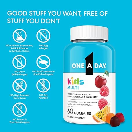 Thông tin sản phẩm ONE A DAY Kids Multivitamin Gummies, Kids Vitamins with Vitamin C, D, E & Zinc for Immune Support, Childrens Gummy Vitamins, Assorted Fruit Flavors, 60ct (Packaging May Vary)