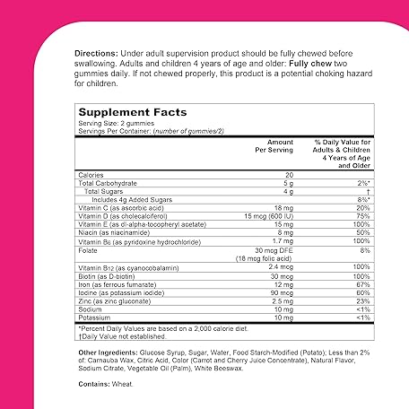 Thông tin sản phẩm ONE A DAY Kids Multivitamin with Iron Gummy, Vitamin D, Vitamin C, E, Zinc for Immune Support, Gummy Vitamins, Kids Multivitamin Gummies with Iron, Cherry Flavor, 60 Count (Packaging May Vary)
