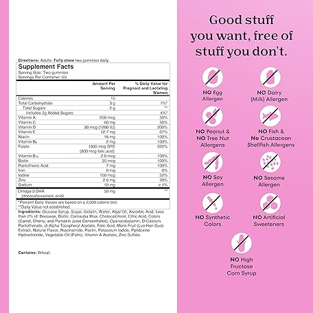 Thông tin sản phẩm ONE A DAY Prenatal Vitamins for Women Gummies- Pregnancy Vitamins for Women with Folic Acid, DHA, Iodine, Prenatal Gummies, Iron-Free, 120 Ct (Packaging May Vary)