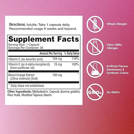 Thông tin sản phẩm One A Day Skin Radiance, Skin Supplement to Support Hydration & Glow with Blood Orange Extract & Collagen Health with Vitamin C & Vitamin E, 30 Capsules