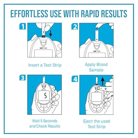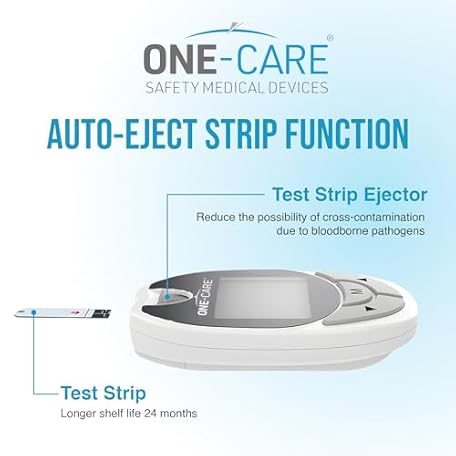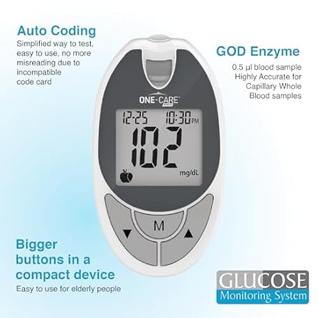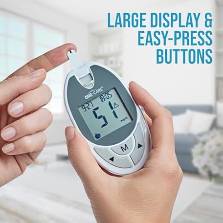 Thông tin sản phẩm ONE-CARE Glucose Monitoring System with Glucometer, 10 Test Strips, Lancing Device, 10 Lancets, and Carrying Case -Blood Sugar Testing Kit for Diabetes Patients, Complete Diabetic Self-Testing Kit with Meter, Strips, and Lancets for fingerprick and capillary blood testing