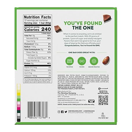 Thông tin sản phẩm ONE Protein Bars, Chocolate Almond Bliss, Gluten Free with 20g Protein and 1g Sugar, Pantry Staples, 2.12 oz (12 Pack), Packaging May Vary