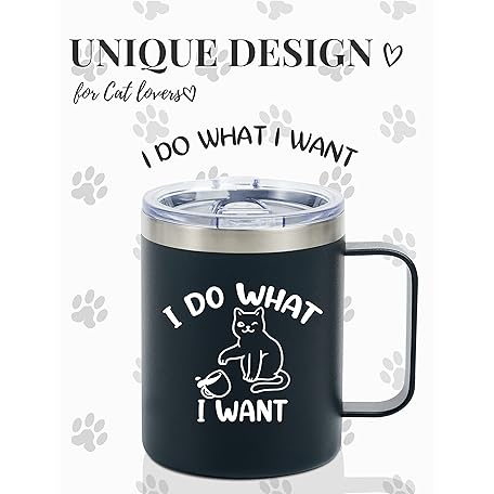 Sản phẩm Onebttl Cat Mug, Funny Gifts for Cat Lovers, Insulated Stainless Steel Coffee Mug with Lid and Handle, For Dad, Mom on Birthday, Christmas, 12 oz, Black, I do what I want đang được bán với giá ưu đãi là $23.9691 tại nước Mỹ.