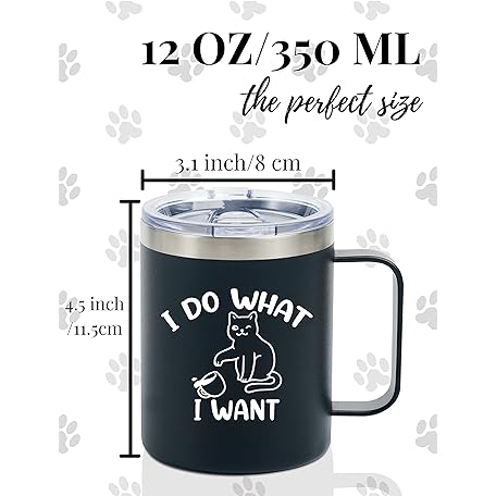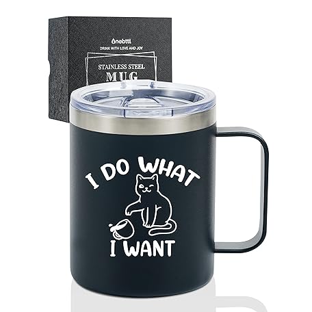 Thông tin sản phẩm Onebttl Cat Mug, Funny Gifts for Cat Lovers, Insulated Stainless Steel Coffee Mug with Lid and Handle, For Dad, Mom on Birthday, Christmas, 12 oz, Black, I do what I want