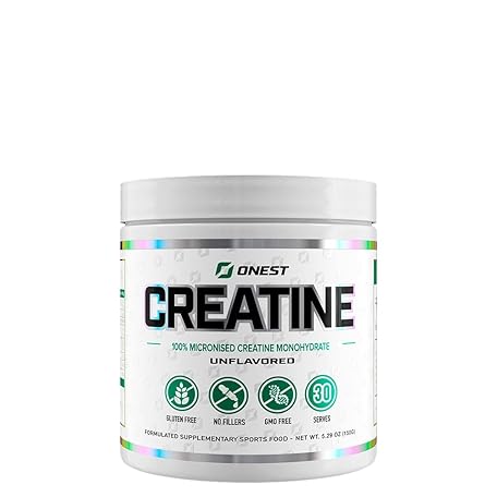 ONEST 150g (30 Servings) Micronized Creatine Monohydrate Powder – 5g per Serving Unflavoured Creatine Powder for Muscle Gain with Gluten-Free & GMO-Free Formula for Post Workout for Men & Women