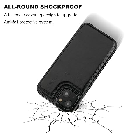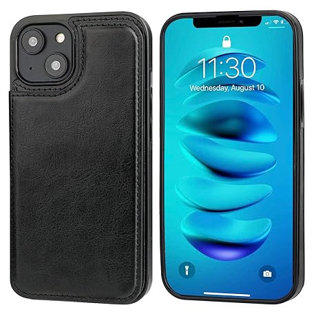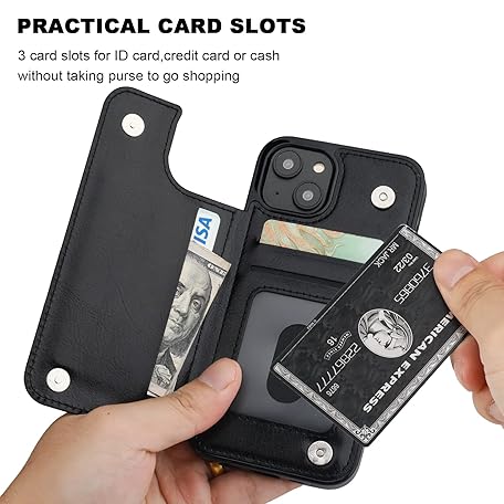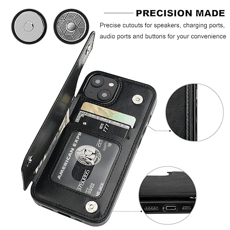ONETOP Compatible with iPhone 14 Wallet Case with Card Holder, PU Leather Kickstand Card Slots Case, Double Magnetic Clasp and Durable Shockproof Cover 6.1 Inch (Black)