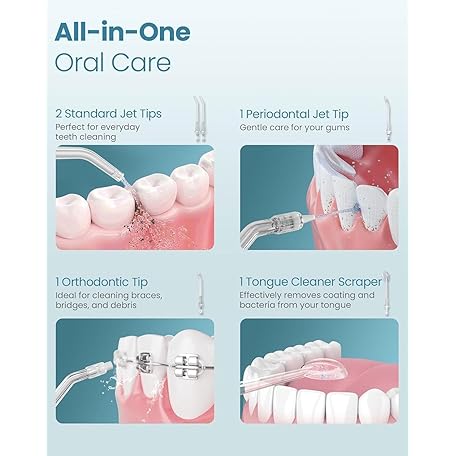 Thông tin sản phẩm Onlyone Water Dental Flosser, 300ML Portable Oral Irrigator for Teeth, 4 Modes and 5 Jet Tips,Rechargeable Irrigation Cleaner,Electric Flossing Machine Power Flossers & Irrigator Accessories Black