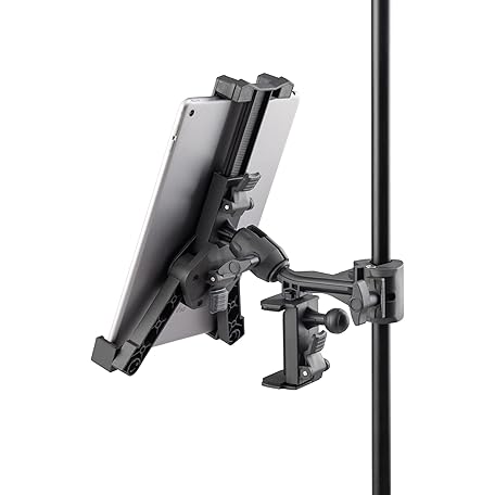 Thông tin sản phẩm OnStage TCM1500 Tablet/Smartphone Holder (Setup for Tablets, Computers, E-Readers, Smartphones, and Phablets, Clamp Mount, Nonslip Padding, Adjustable Angle and Rotation, External Battery Holder)
