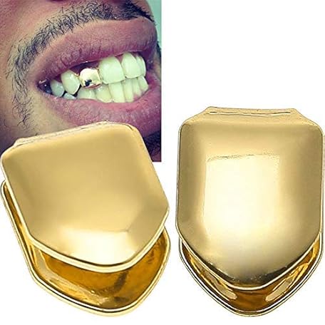 Onwon 2 Pieces 14K Plated Gold Grillz Hip Hop Top Tooth Single Grill Cap for Teeth Mouth