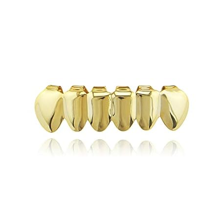 OOCC 18K Gold Plated 2pcs Single Top and Bottom Grills Teeh Grillz Set for Men Hip Hop Grillz Set