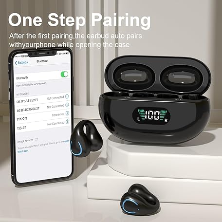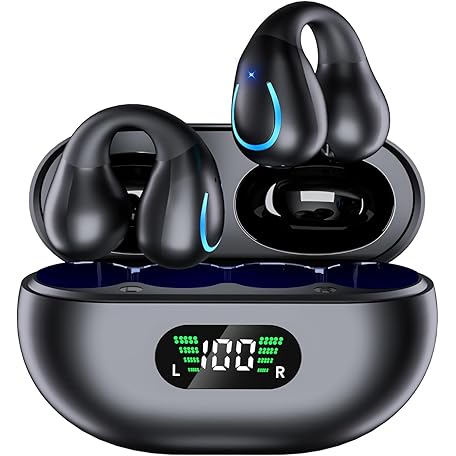 Sản phẩm Open Ear Bone Conduction Headphones,True Wireless Bluetooth 5.3 Lightweight Comfort Clip On Earbuds with LED Digital Display Charging Case Sport Built-in Mic IPX7 Waterproof for Running Fitness,Black đang được bán với giá ưu đãi là $21.7782 tại nước Mỹ.