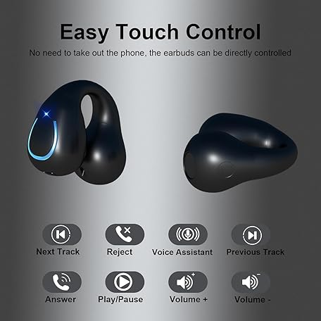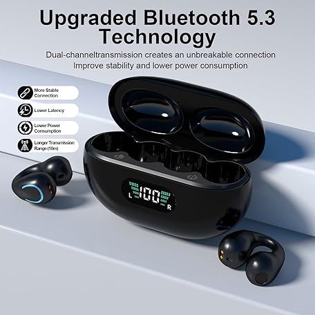 Thông tin sản phẩm Open Ear Bone Conduction Headphones,True Wireless Bluetooth 5.3 Lightweight Comfort Clip On Earbuds with LED Digital Display Charging Case Sport Built-in Mic IPX7 Waterproof for Running Fitness,Black