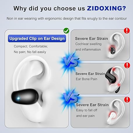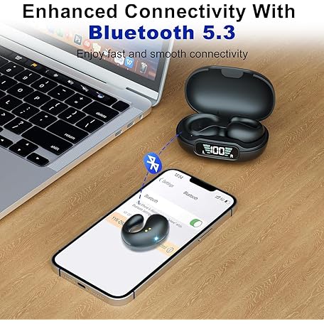 Thông tin sản phẩm Open Ear Clip Wireless Bone Conduction Earbuds Wireless Bluetooth 5.3 Earbuds, Headphones Sports Built-in Microphone with Earhooks,Digital Display Charging Case,IPX7 Waterproof Fitness for Running