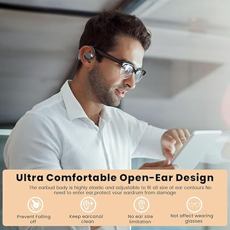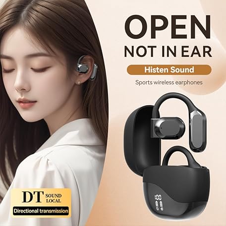 Open Ear Earbuds Bluetooth Over Ear buds 58Hrs Playtime Wireless Headphones with Earhooks Waterproof Touch Control Air Conduction Sport Headsets Bluetooth 5.3 Earphones for Workout Running Black