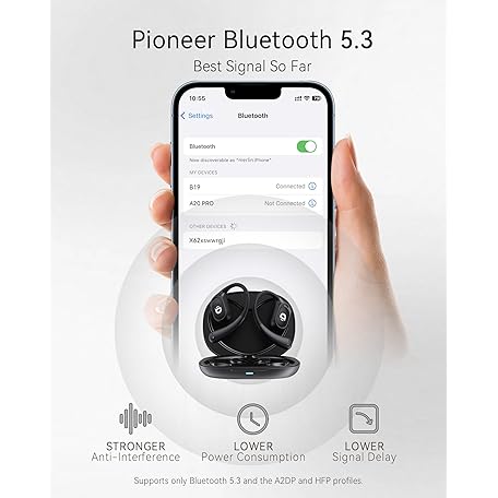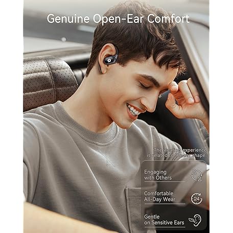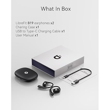 Thông tin sản phẩm Open Ear Earbuds, True Wireless Open Ear Headphones with Earhooks, Air Conduction earphones, Touch Control, Dual Noise-Cancelling Mics, Up to 30 Hours Power with Case, IPX5, Workouts, Yoga, Running