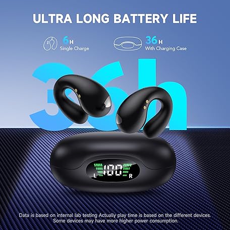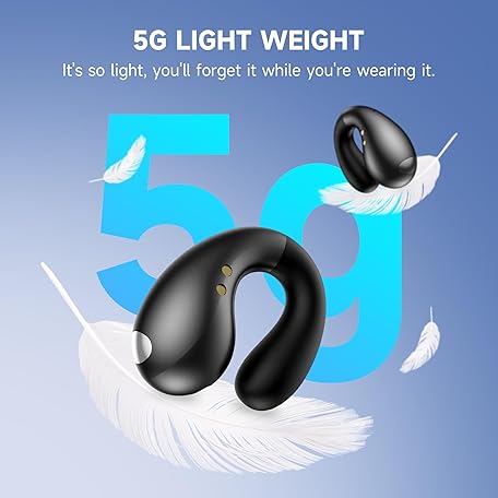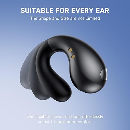 Open Ear Earbuds Wireless Bluetooth 5.3 Earphones, Flexible Clip On Ear buds with 36H Playtime LED Display Bone Conduction Headphones, IPX7 Waterproof Light Weight Fit for Every Ear, Sport, Workout