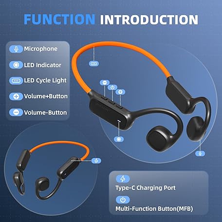 Open Ear Headphones, Air Conduction Headphones Bluetooth 5.4, Wireless Headphones with LED Beacon String, 10H Playtime, Sports Headphone for Running & Outdoor