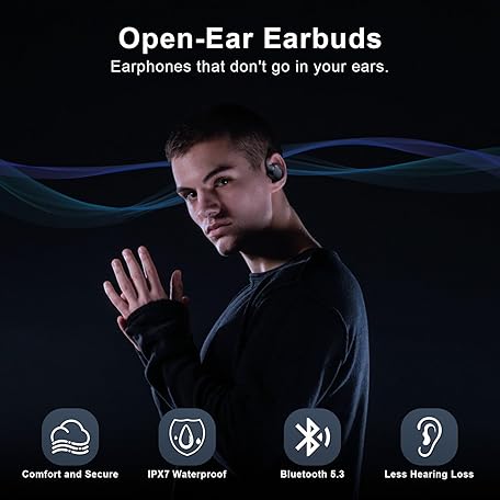 Sản phẩm Open Ear Headphones, Open Ear Earbuds, IPX7 Waterproof, Bluetooth 5.3 True Wireless Sports Over Ear Earbuds with Earhooks, Built-in Mic, Crystal-Clear Calls for Running Workout Cycling Driving đang được bán với giá ưu đãi là $76.2564 tại nước Mỹ.