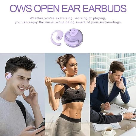 Thông tin sản phẩm Open Ear Headphones Wireless Bluetooth 5.4, OWS Hanging Earphones Wireless Earbuds with Earhooks and Mic, IPX5 Waterproof, 48H Range, Out of Ear Earbuds for Sports Running Workout Driving(Purple)