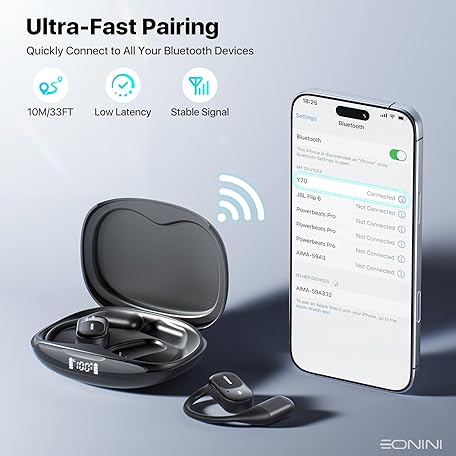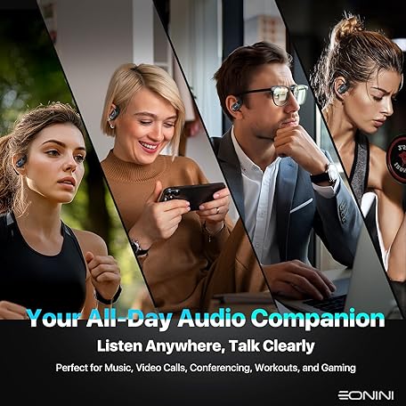 Thương hiệu Eonini là cái tên nổi tiếng được rất nhiều khách hàng trên thế giới chọn lựa. Với kiểu dáng đẹp mắt, sang trọng, sản phẩm Open Ear Headphones Wireless Bluetooth Earbuds with Smart Power Display, 40H Playtime, Clear Calls, Secure Fit, IPX5 Waterproof Sports Earbuds for Workout, Running là sự lựa chọn hoàn hảo nếu bạn đang tìm mua một món cho riêng mình.
