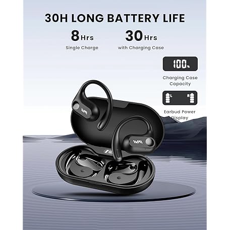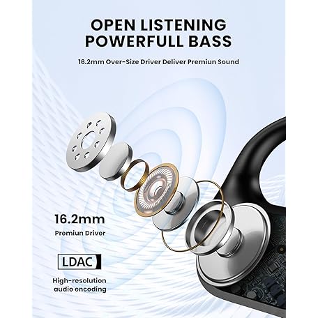 Thông tin sản phẩm Open Ear Headphones,Bluetooth 5.3 Air Conduction Headphones ,Comfortable for Long Wear ,Powerful Bass,AI Clear Calls,30H Playback,IPX6 Light Weight Open Ear Earbuds with Ear-Hook for Workout,Running