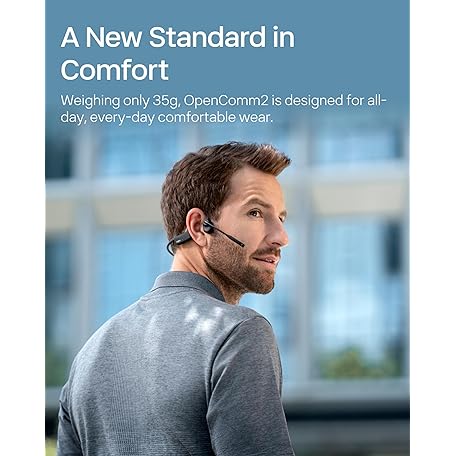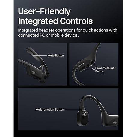 OpenComm2 2025 Upgrade - Open-Ear Bone Conduction Headphones, Wireless Bluetooth Headset with Noise Canceling Mic & Mute Button for Work Calls and Meetings, 16 Hour Talk Time for Mobile & PC - C120