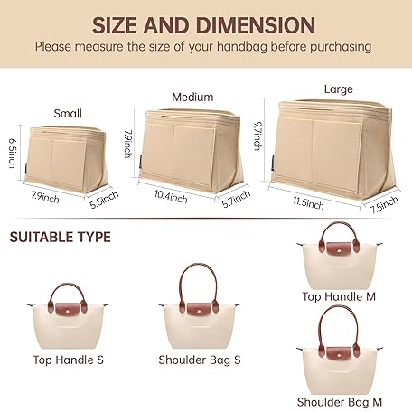 Thông tin sản phẩm OPPOSHE OPPOSHE Purse Organizer Insert for Longchamp Le Pliage, Premium Felt Long Champ Bag Handbag Women, Tote Organizer Insert with 9 Compartments (Large, Beige)