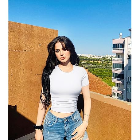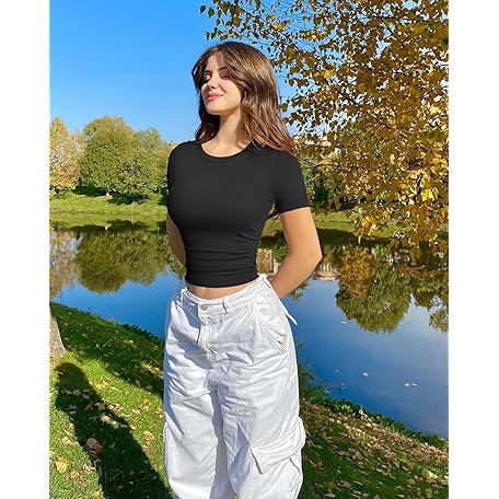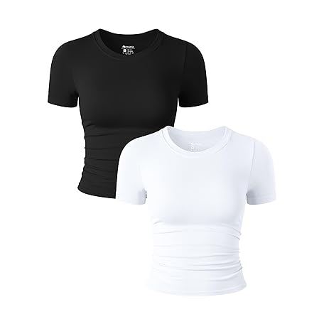 • OQQ Womens 2 Piece Shirts Short Sleeve Crew Neck Ruched Stretch Fitted Tee Shirts Crop Tops