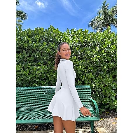 • OQQ Womens Dress Casual Long Sleeve Elastic Simple A-Line Zipper Mini Dress