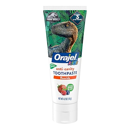 Sản phẩm Orajel Kids Jurassic World Anti-Cavity Fluoride Toothpaste, Natural Berry Blast Flavor, 4.2oz Tube đang được bán với giá ưu đãi là $10.8891 tại nước Mỹ.