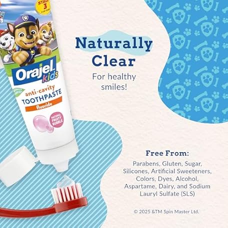 Thông tin sản phẩm Orajel Kids Paw Patrol Anti-Cavity Fluoride Toothpaste, Natural Fruity Bubble Flavor, 4.2oz Tube