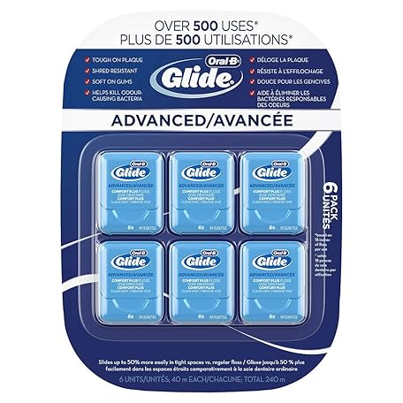 Oral-B Glide Advanced Comfort Plus Floss, 6 Count 40 m Each, Total 240 m or 262.5 Yard