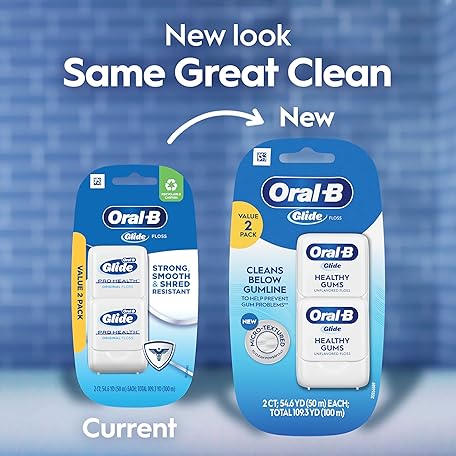Thông tin sản phẩm Oral-B Glide Healthy Gums Unflavored Dental Floss, Smooth, Strong, Shred Resistant, Value 2 Pack (50m Each)