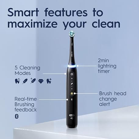 Thông tin sản phẩm Oral-B iO Deep Clean + Whiten Rechargeable Electric Toothbrush with Visible Pressure Sensor, 2 Minute Timer, 5 Cleaning Settings, 1 iO5 Limited, 3 Toothbrush Heads, Travel Case & Refill Holder, Black