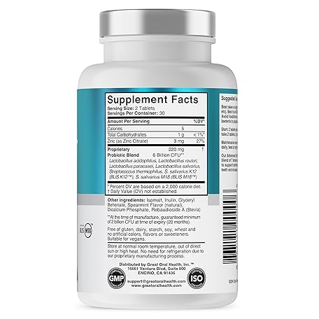 Thương hiệu Great Oral Health là cái tên nổi tiếng được rất nhiều khách hàng trên thế giới chọn lựa. Với kiểu dáng đẹp mắt, sang trọng, sản phẩm Oral Probiotics for Mouth Bad Breath Treatment for Adults; Dentist Formulated Dental Probiotics for Teeth and Gums Health & Chronic Halitosis with BLIS K12 M18, 60 Chewable Oral Health Tablets Mint là sự lựa chọn hoàn hảo nếu bạn đang tìm mua một món cho riêng mình.