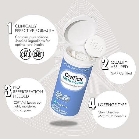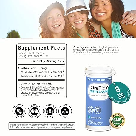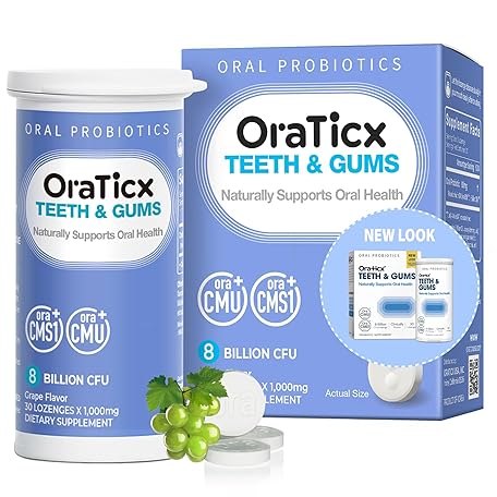 Thông tin sản phẩm OraTicx Teeth & Gums Oral Probiotics, 8 Billion CFU - Naturally Supports Oral Health, Fresh Breath, and Immunity, Dental Probiotic Supplement, Grape Flavor 30 Lozenges 1-PK