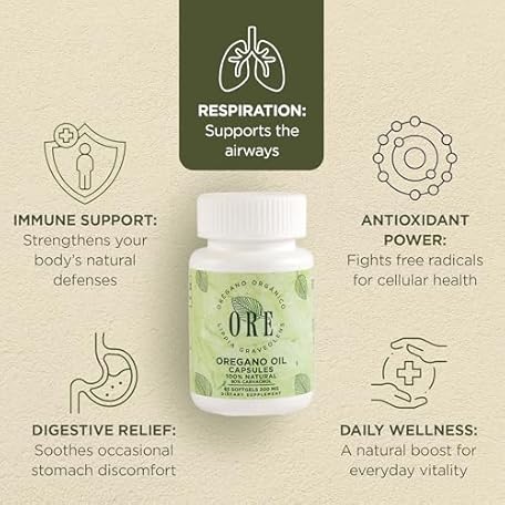 ORE Oregano Oil Softgels 80% Carvacrol | Wild Mexican Oregano | Herbal Immune & Respiratory Support | Natural Supplement | Non-GMO, Gluten-Free | 65 Easy-to-Swallow Capsules