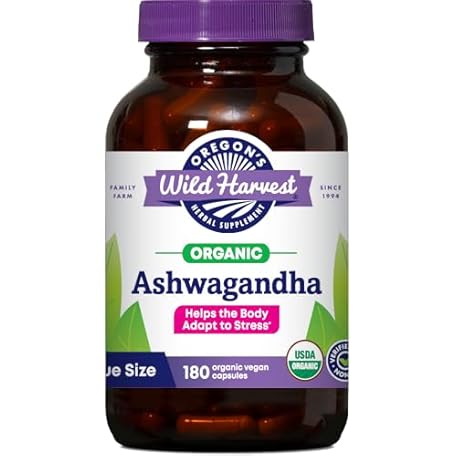 Thông tin sản phẩm Oregon's Wild Harvest Organic Ashwagandha Non-GMO Herbal Supplements for Stress Relief, Immune Support, Balanced Energy Levels & Mood Support, 180 Count