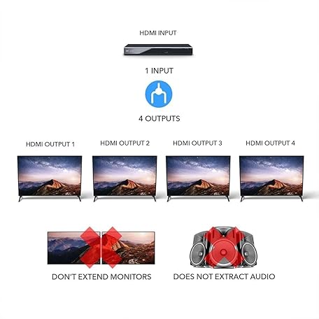 Thông tin sản phẩm OREI HDMI Splitter 1 in 4 Out – 1x4 4K@60Hz HDMI 2.0 UHD Powered 4-Port HDMI Splitter with HDCP 2.2, EDID Management, 18Gbps Bandwidth – 4-Way Output for TV, Fire Stick, PS5, Blu-ray