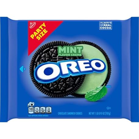 Sản phẩm Oreo Mint Creme Chocolate Sandwich Cookies, Party Size, 24.95 oz đang được bán với giá ưu đãi là $6.5182 tại nước Mỹ.